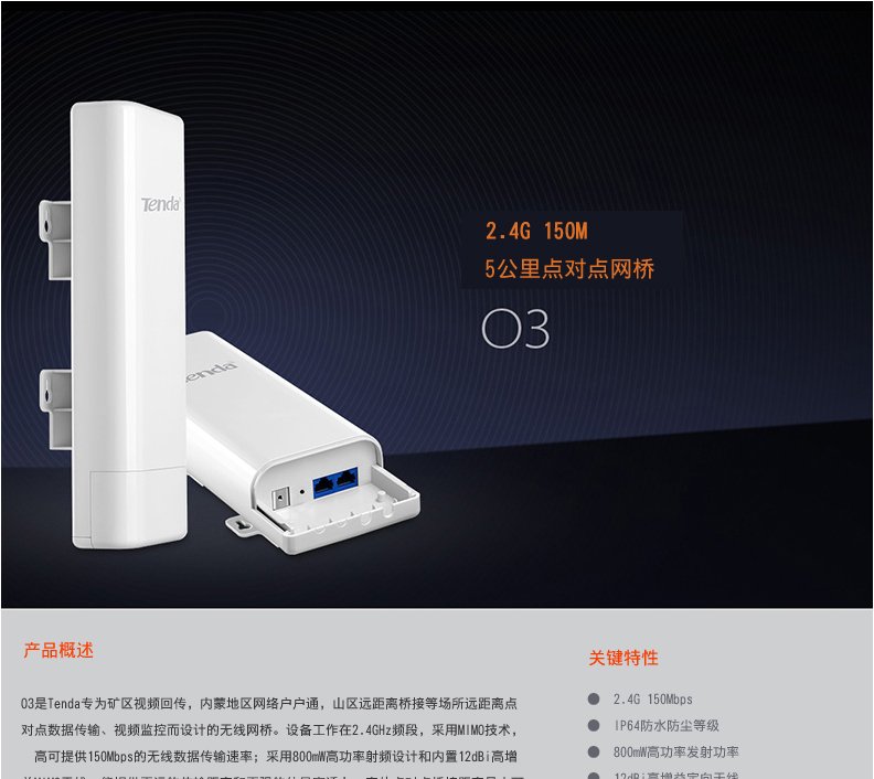1、该产品是腾达的点对点无线网桥,一般正常情况需要2个才能实现点对点无线桥接。