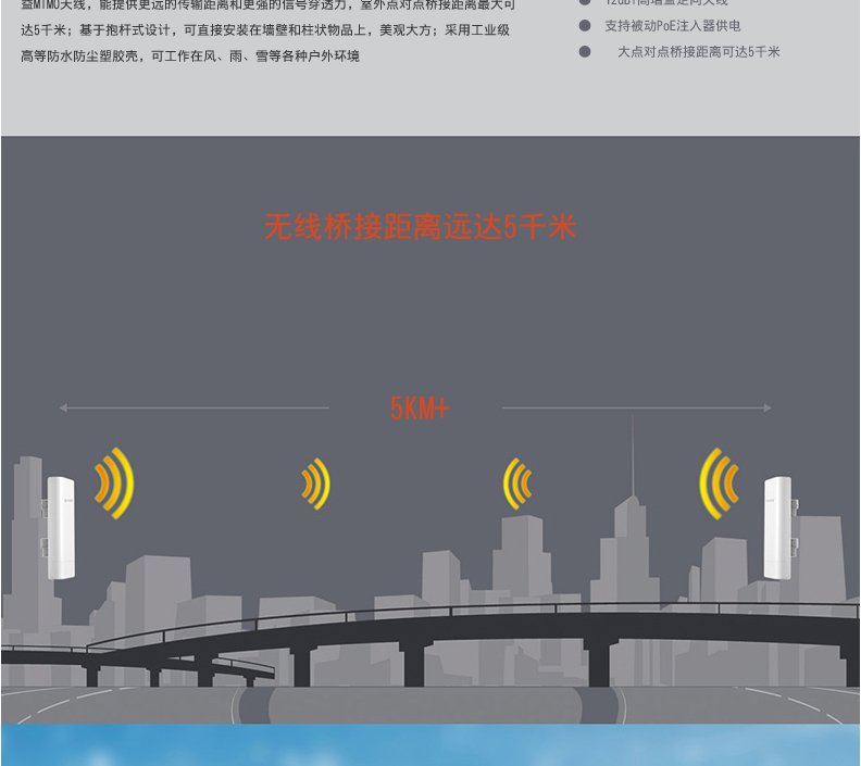 4、该产品只能做无线点对点网桥,不能作为无线AP使用。
